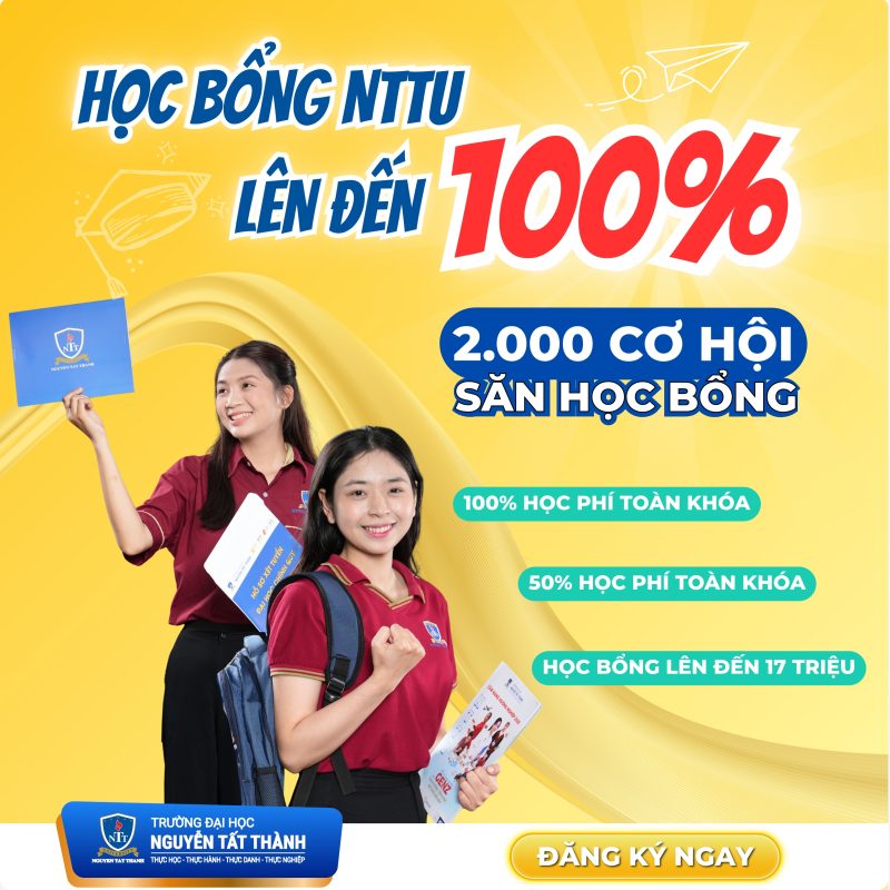 Nhằm ghi nhận nỗ lực và thành quả của học sinh trong quá trình học tập. Đồng hành cùng quý phụ huynh từ nhiều năm qua, Trường Đại học Nguyễn Tất Thành đã có nhiều chính sách học bổng dành cho sinh viên. Năm 2026, NTTU đã mang đến các gói học bổng hấp dẫn lên đến 100% học phí toàn khóa.